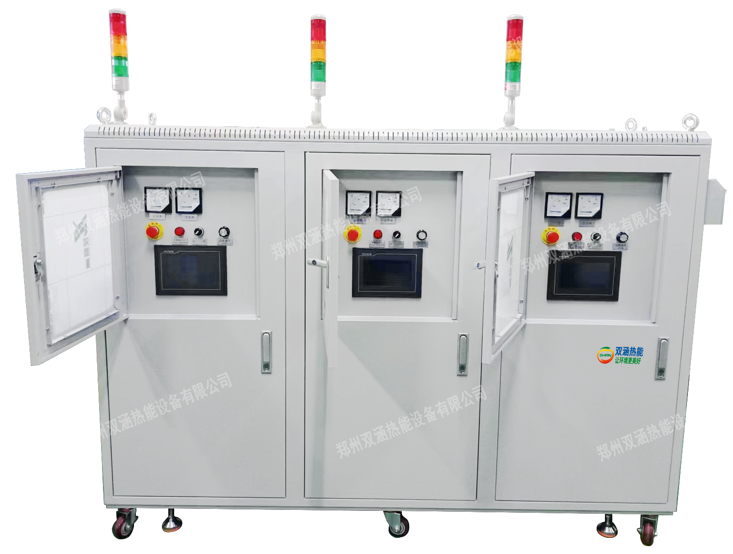 電磁感應熱拆裝設備主要結構由變頻數字電源柜和電磁加熱導線組件兩部分組成。其工作原理是將三相工頻電源經變頻電源控制柜逆變成頻率可調的單相電源,輸送到電磁加熱導線組件上。該系統為TMS320F高速處理數字控制系統,處理速度快。利用電磁加熱器和纏繞加熱器的工件直接發熱,充分將電能轉換為熱能,使工件加熱。